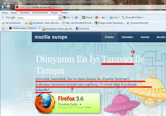 “Dünyanın en iyi tarayıcısı” yazmaktan aciz, alttaki sloganınıda sözlük çevirisiyle yaptığı kolayca anlaşılan Firefox yetkililerine sesleniyorum;