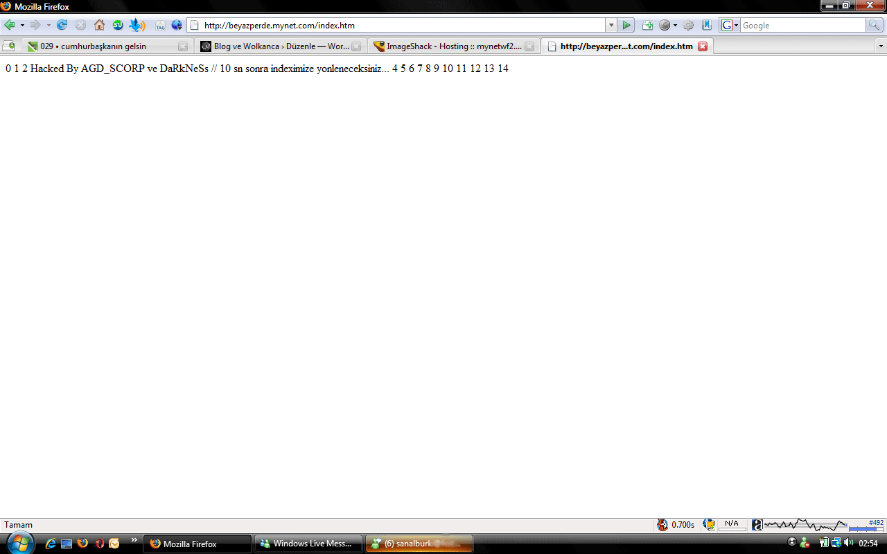 beyazperde.mynet.com adresine bir index dosyası gönderen hackerlardan henüz mynet yetkililerinin haberi olduğunu sanmıyorum bu yazıyı yazarken zira beyazperde.mynet.com adresine girmdiğinizde her şey normal görünüyor fakat beyazperde.mynet.com/index.htm adresine şu anda girildiğinde aşağıdaki ekran görüntüsü ile karşılaşıyoruz.
